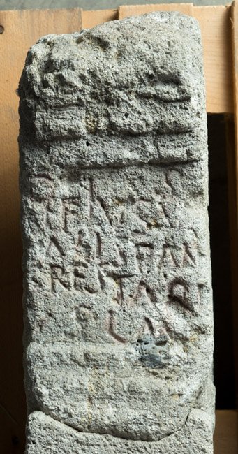 - stark verwittert, zerbrochen, oben u. unten abgebr.