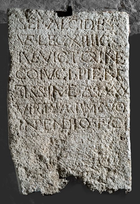 - Sep(timius) Alcides / vet(eranus) leg(ionis) XIIII g(eminae) / Iul(iae) Victorin(a)e co(n)iuci(!) pien/tissim(a)e an(norum) XXX / viridarium suo / impendio f(aciendum) c(uravit)