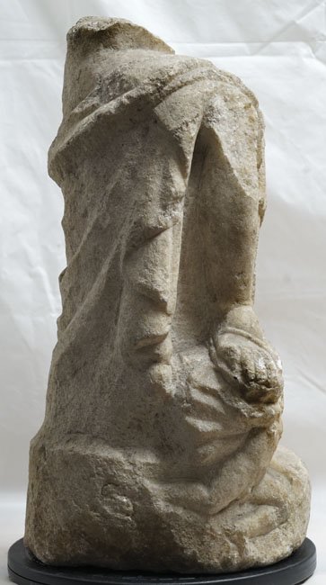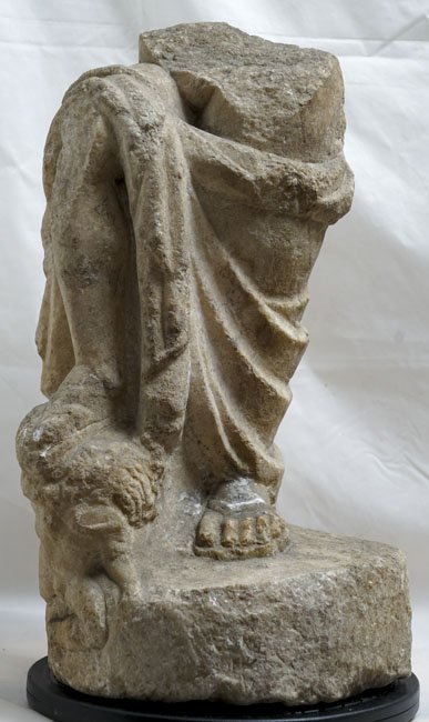 - oben abgebr., nur Hüftpartie und Beine mit Plinthe erhalten