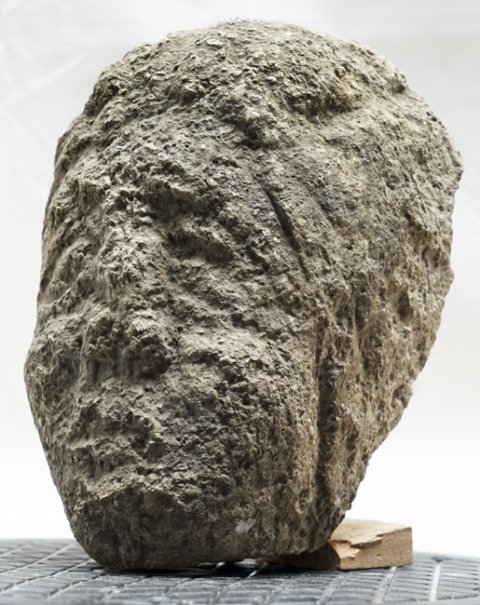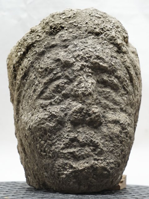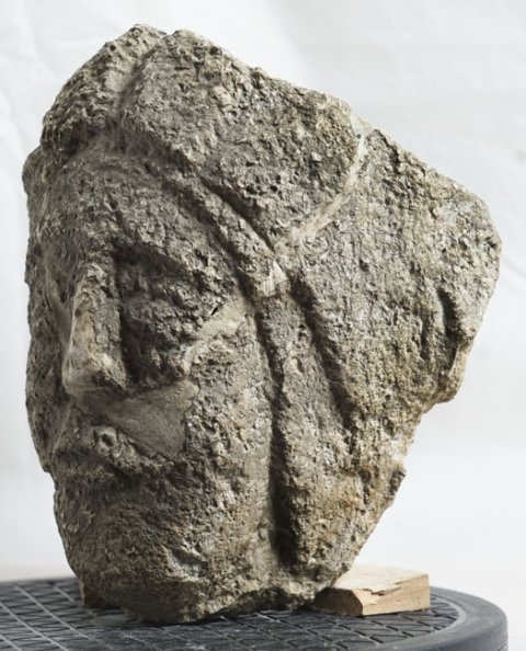 - Rückseite abgeschlagen, aus Fragmenten zusammengesetzt, stark bestoßen