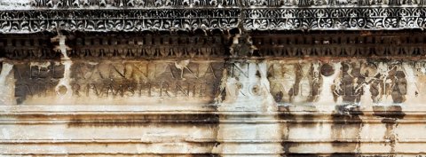 - Melia Anniana in memor(iam) Q(uinti) Laepici Q(uinti) f(ilii) Serg(ia) Bassi mariti sui / emporium sterni et arcum fieri et statuas superponi test(amento) iuss(it) ex HS DC(milium) d(educta) XX(vicesima) p(opuli) R(omani)