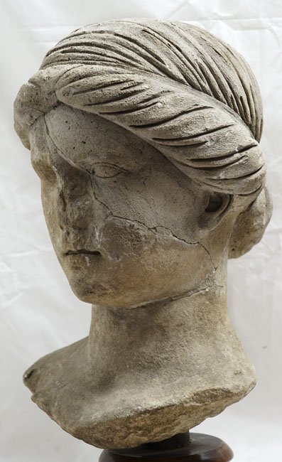 - Kopf zum Einsetzen, linke Stirnhälfte, linkes Auge und linke Seite des Oberkopfes ergänzt
