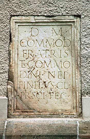 - D(is) M(anibus) / Commodi / fratris / et Commo/dini nep(otis) / Finitus Cl(audii) / Prisci fec(it)