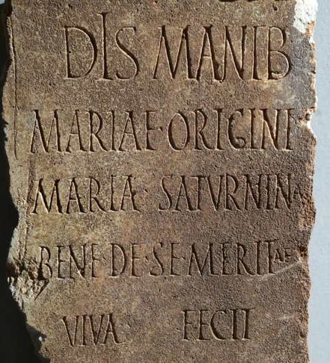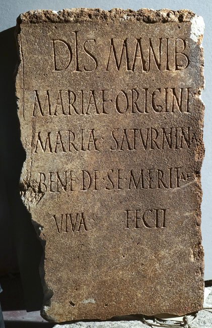 - Dis Manib(us) / Mariae Origini / Maria Saturnina / bene de se meritae / viva fecit