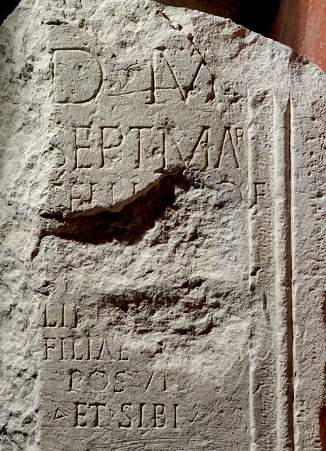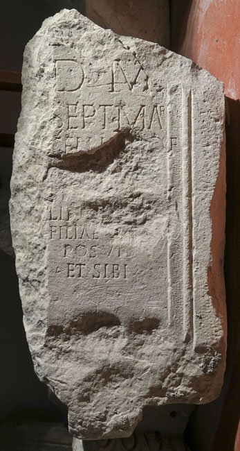 - D(is) M(anibus) / Sept(imae) Mar/cellinae def(unctae) / an(norum) XXVII / Sept(imius) Marcel/linus pater / filiae pientis(simae) / posuit / et sibi