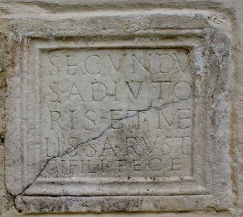 - Secundu/s Adiuto/ris et Me/lissa Rusti/ci fili(i) fece(runt)