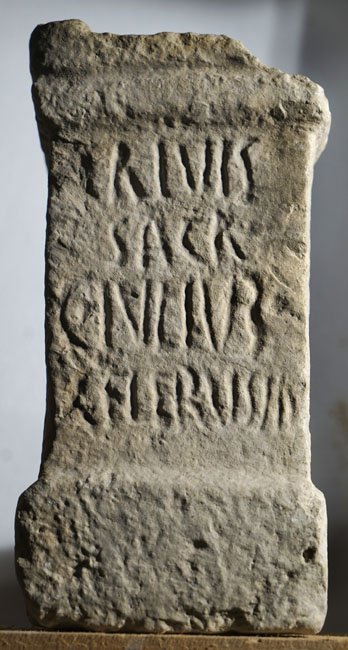 - Trivi(i)s / sacr(um) / C(aius) Iulius / Celer / v(otum) s(olvit) l(ibens) m(erito)