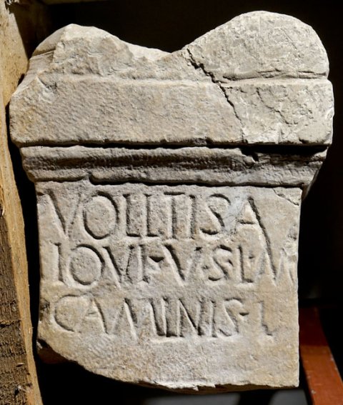 - Volltisa / Iovi v(otum) s(olvit) l(ibens) m(erito) / Caminis l(iberta)