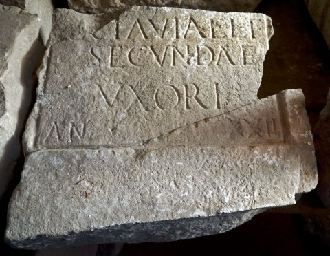 - Q(uintus) Gnorius / Q(uinti) l(ibertus) Faustus / Octaviae L(uci) f(iliae) / Secundae / uxori / an(norum) XXII