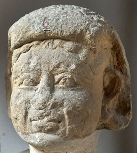 - Porträtkopf einer Frau mit Scheitelzopf-Frisur und Ohrgehängen