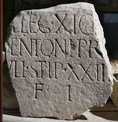 - [--- mi]l(es) leg(ionis) XI C(laudiae) [P(iae) F(idelis) ---] / [---]entoni pr[---] / [--- an(norum) --]VII stip(endiorum) XXIII[---] / [t(estamento)] f(ieri) i(ussit)