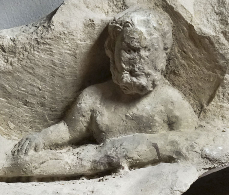 23169 Relieffragment mit Tier und bärtiger Männerfigur