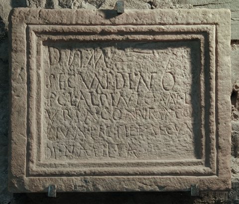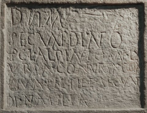 - D(is) M(anibus) / Secundino / S(exti) Cl(audii) Alpini o(bito) an(norum) LX / Ursa con(iunx) {Ursa con(iunx)} / viva fecit et Secun/dina filia
