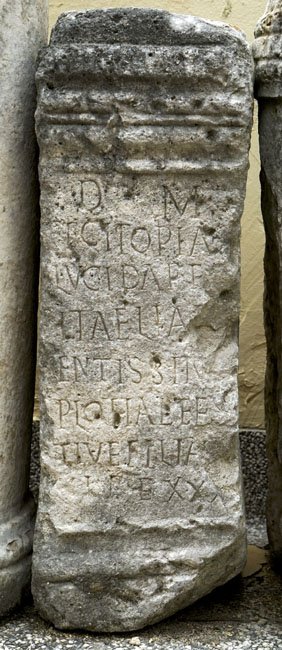 - D(is) M(anibus) / fecit Opia / Lucida fe[c]/it Aelia[no pi]/entissim[o c(oniugi)? et] / Plotiae Fe[s]/tiv(a)e filia[e ---?]/[---]II FE XXX