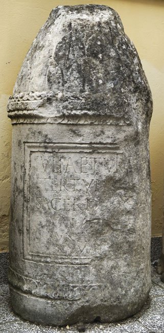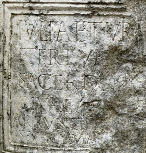 - Iuliae Turi / f(iliae) Tertul[lae] / sacerd[oti] / divae A[ugustae] / Arrunti[a - f(ilia)] / Severa m[ater]