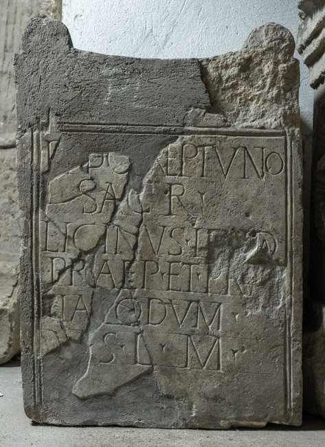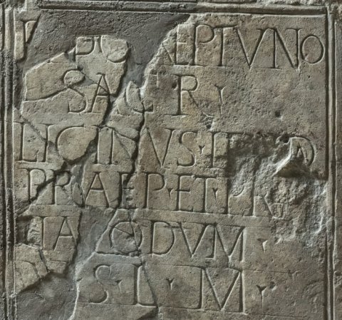 - B[i]ndo Neptuno / sacr(um) / Licinius Teuda / praep(ositus) et pri[n(ceps)] / Ia[p]odum / v(otum) s(olvit) l(ibens) m(erito)