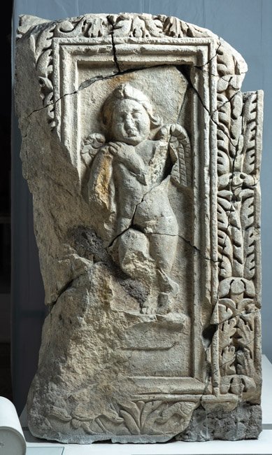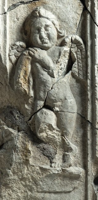 - aus Fragmenten zusammengesetzt, Unterteil u. rechte Seite abgeschlagen, Sockel u. Bekrönung fehlen