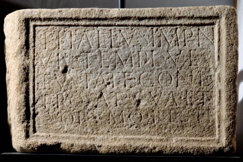 - Thallus Imp(eratoris) n(ostri) / vil(icus) templ(um) ve/tustate conl(apsum) / pro sa(lu)t(e) sua et / suorumq(ue) resti(tuit)