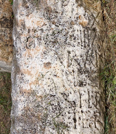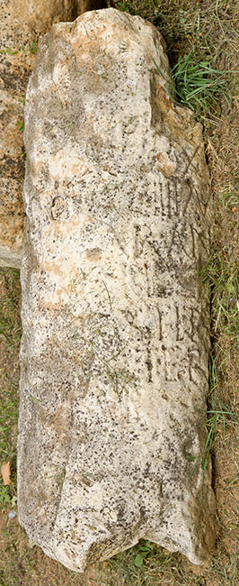 - [Imp(erator) Caes(ar) L(ucius) Septimius] / [Severus Pius Pertinax] Au[g(ustus)] / [Arab(icus) Adiab(enicus) Part(hicus)] max(imus) / [pont(ifex) max(imus) trib(unicia) pot(estate)] VIII im[p(erator)] / X̣I p̣(ater) p(atriae) ẹ[t Imp(erator) Caes(ar) M(arcus)] A(u)r(elius) Anṭ[o]/ṇinus [Aug(ustus) tr(ibunicia) pot(estate)] bis [[et [P(ublius)]]] / [[[Septimius Geta Caes(ar) Aug(ustus)]]] [r]estitụ[e]/[r]unt pe[r C(aium) Ovinium] Ter[tul(lum) leg(atum)] / [pr]o [pr(aetore)] m(ilia) p(assuum) [---]