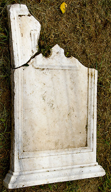 - rechteckige Platte mit profiliertem Sockel, darüber gerahmtes Feld, darin oben vorspringendes Rechteck mit runden Öffnungen