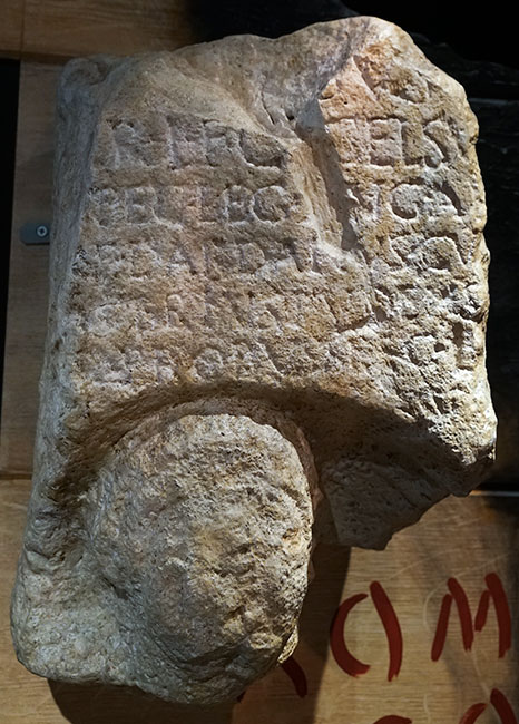 - [Dis Mani]bus / [Vale]r(ius) L(uci) f(ilius) C[l(audia)] Celsu[s] / [--- s]pec(ulator) leg(ionis) [II A]ug(ustae) An/[to]n(ius) Dardanus Cu[r]/[sor R]ubrius Pudens / [---]s Probus sp[e]c(ulatores) l[eg(ionis) / [---