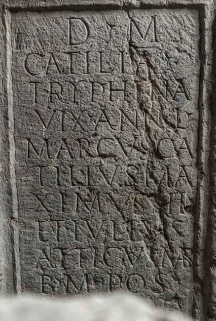 - D(is) M(anibus) / Catilia / Tryphina / vix(it) ann(os) L / Marcus Ca/tilius Ma/ximus fil(ius) / et Iulius / Atticus mar(itus) / b(ene) m(erenti) pos(uerunt)