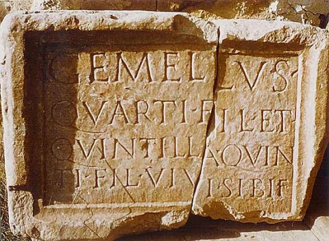 - Gemellus / Quarti fil(ius) / et Quintilla / Quinti fil(ia) / vivi sibi f(ecerunt)