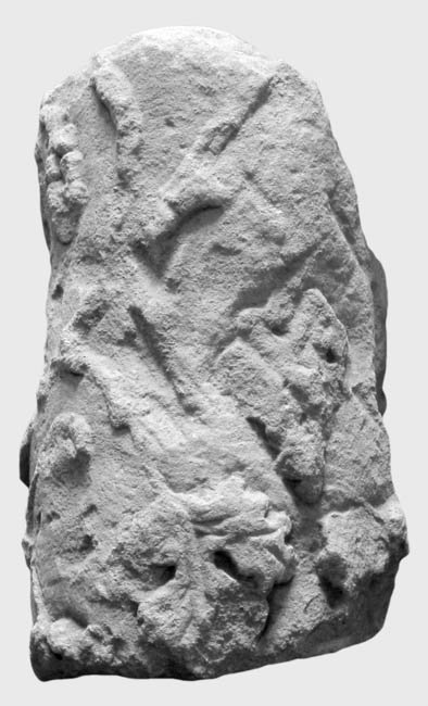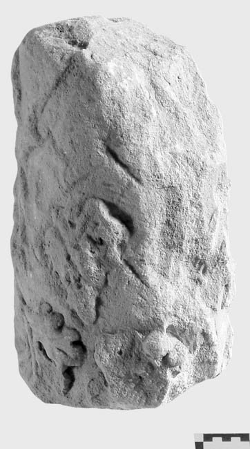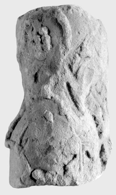 - oben u. unten abgebr., stark bestoßen u. abgerieben, Rückseite abgeflacht