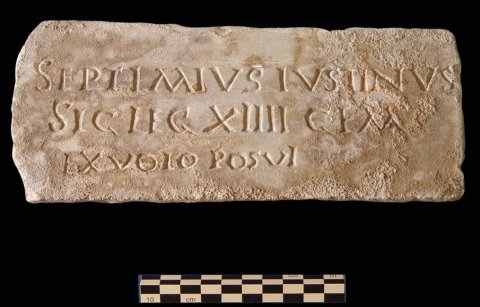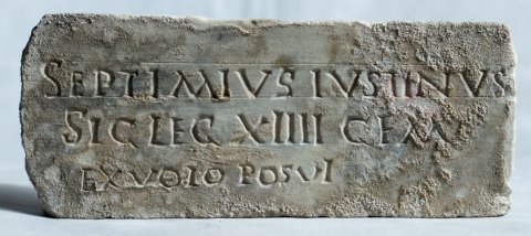 - Septimius Iustinus / sig(nifer) leg(ionis) XIIII gem(inae) / ex voto posui(t)