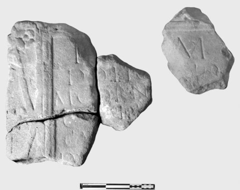 - I(ovi) [O(ptimo)] M(aximo) / Dolic[he]no / M(arcus) Corn[elius et] / C(aius) V[a]l(erius) [---] / C(aius) V[---] / D(ecimus) [---] / s[ub(?) sac(erdotibus?) ---] / et Mari[no]