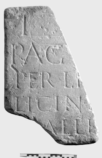 - I(ovi) [O(ptimo) M(aximo)] / pagu[s ---] / per Li[cinium(?)] / Licini[anum(?)] / et Alli[um ---]