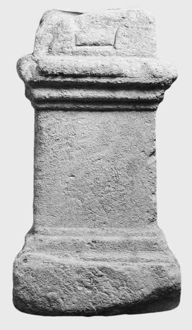 - Altäre mit Sockel- und Kopfprofil und Eckakroteren. Auf Grund der Fundumstände werden sie Cautopates und Cautes zugeordnet.