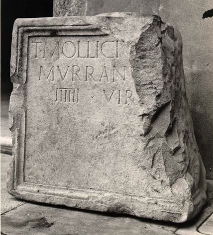 - T(itus) Molliciu[s T(iti) l(ibertus)] / Murran[us] / IIIIIIvir.