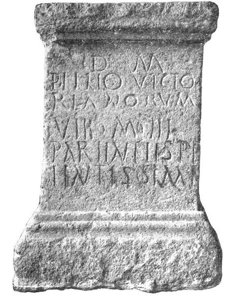 - D(is) M(anibus) / P(ublio) (A)elio Victo/ri an(n)orum / VIII m(ensium) III / parentes pi/ientissimi (!)