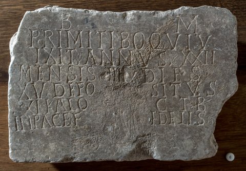 - B(onae) m(emoriae) / Primitibo(!) qui v/ixit annus(!) XXII / mensis IIII dies / XV depositus / XI Kal(endas) Oct(o)b(res) / in pace fedelis(!)