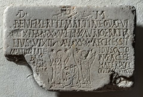 - D(is) m(anibus) / benemerete(!) Martin(a)e quae vi/xit an(nos) XXV et Maurio frater / eius vixit an(nos) XXXV rece{ce}ssit / Martin(a) pri(d)ie idus octo/bris in pace fe/delis mater doli/ens contr(a) votu(m) fecit