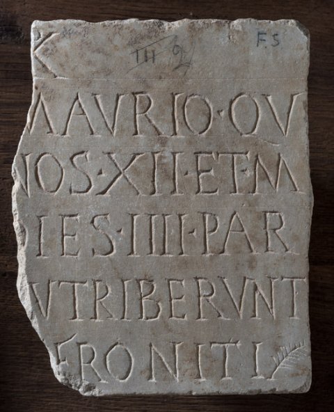 - [---] Maurio qu/[i vixit an]nos XII et m/[enses ---] / [---] dies IIII par/[entes filio co]ntrib(u)erunt / [parvo tempore] froniti(!)