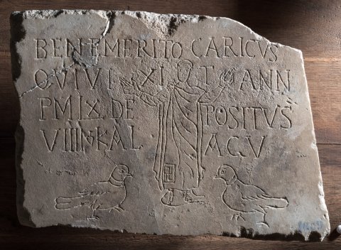 Bene merito Caricus(!) / qui vixit ann(os) / p(lus) m(inus) LX depositus / VIIII Kal(endas) A(u)gu(stas)