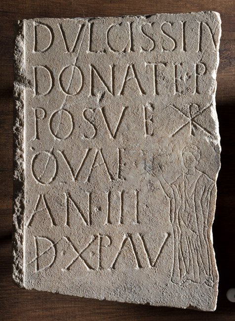 - Dulcissim[ae ---] / Donat(a)e p[arentes ---] / posue[runt ---] / quae [vixit] / an(nos) III [m(enses) ---] / d(ies) X pau[savit ---]