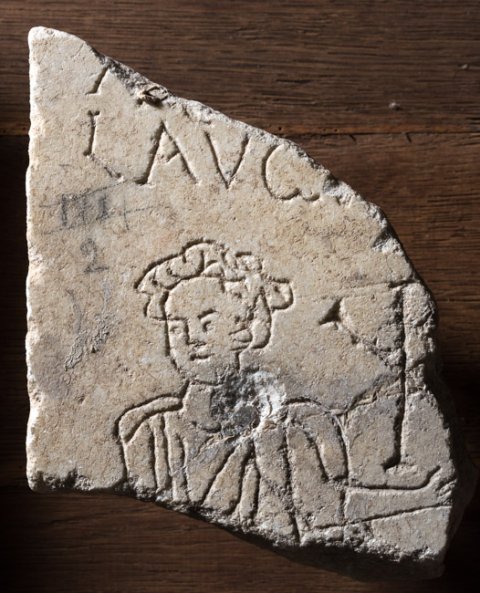 - unter der Inschrift Ritzzeichnung: Orant, daneben Christogramm