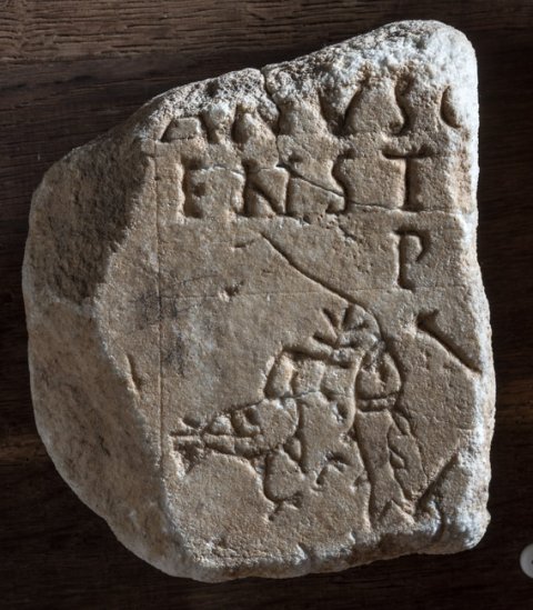 - ursprünglich 2 anpassende Fragmente, heute nur das untere vorhanden