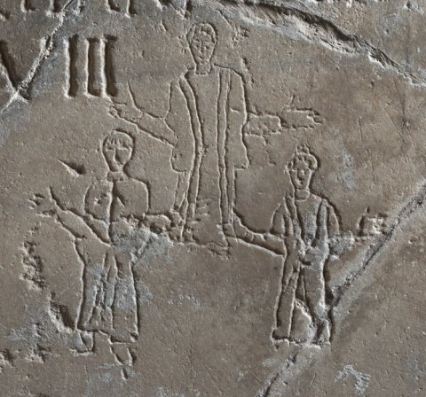 - unter der Inschrift Ritzzeichnung: drei Oranten
