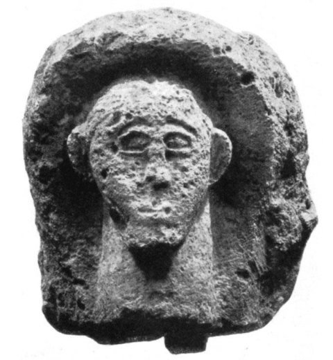 - bogenförmige Nische mit Kopf eines bartlosen Mannes