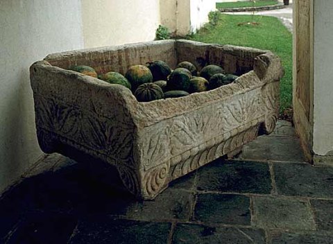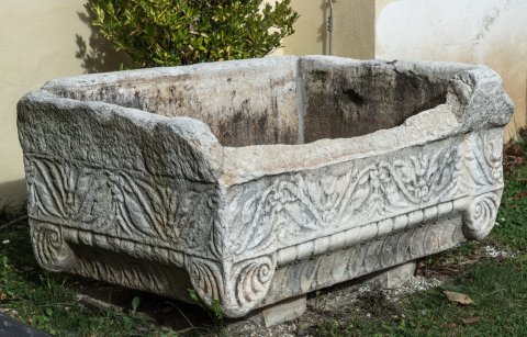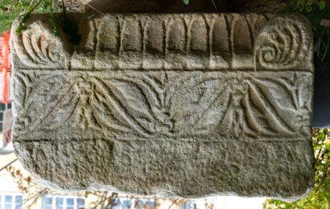 - Teil eines Grabaltars ? Palmetten-Lotus-Fries, darüber Pfeifenstabfries zwischen Palmettenakroteren.