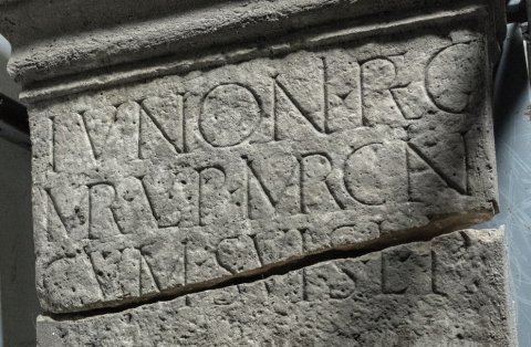 - Iunoni Reg(inae) / Mar(cus) Ulp(ius) Marcian(us) / cum suis l(ibens) p(osuit)