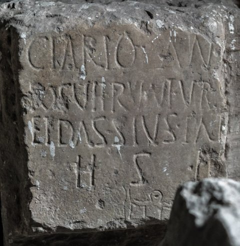 - Dis / [Manibus] / [------] / Clario an(norum) [---] / posuerunt Ur[sus] / et Dassius pat[ri] / h(ic) s(itus) es[t]