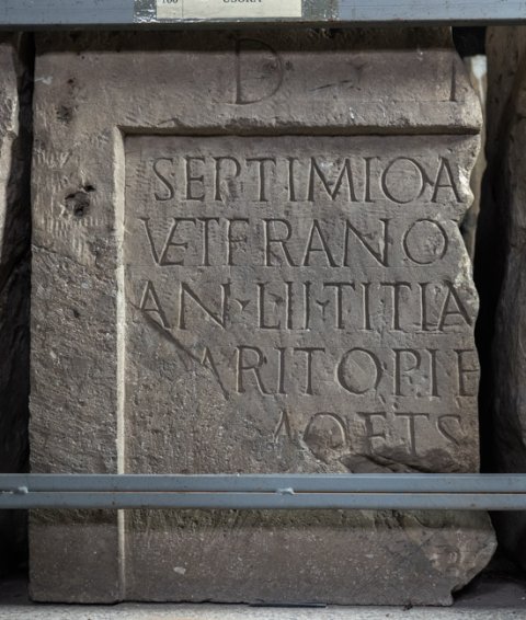- D(is) M(anibus) // Septimio A[---]/ vetfrano(!) v[ixit] / an(nos) LII Titia [---] / [m]arito pie[ntis]/[si]mo et si[bi] / [---]C[---] / [---]B[---