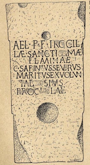 - Ael(iae) P(ubli) f(iliae) Procil/lae sanctissimae / feminae / C(aius) Safinius Severus / maritus ex volun/tate ipsius / Procillae