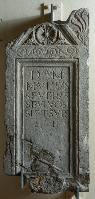 - D(is) M(anibus) / M(arcus) Ulpius / Severus / se vivo si/bi et suis / fe(cit)