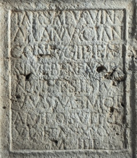 - D(is) M(anibus) // T(itus) Aur(elius) Saturninus / Aur(eliae) Amurcian(a)e / coniugi pientis/simae bene mere/nti et sibi vi/vus memori/am posuit q(uae) / vixit an(nos) XXVIIII / m(enses) IIII